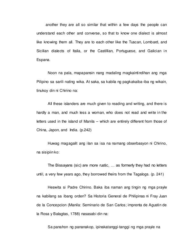 Nakasulat sa wikang Filipino ang nilalaman nit. Pagkatapos ay sumulat ng isang sanaysay na nakasentro sa pag-unawa sa isyu. Sipi mula sa babasahing papel ng panayam sa Y407 Pamantasang De La Salle Marso 30 930-1100 nu Ang limitasyon ng aking wika ay siyang limitasyon ng aking mundo.