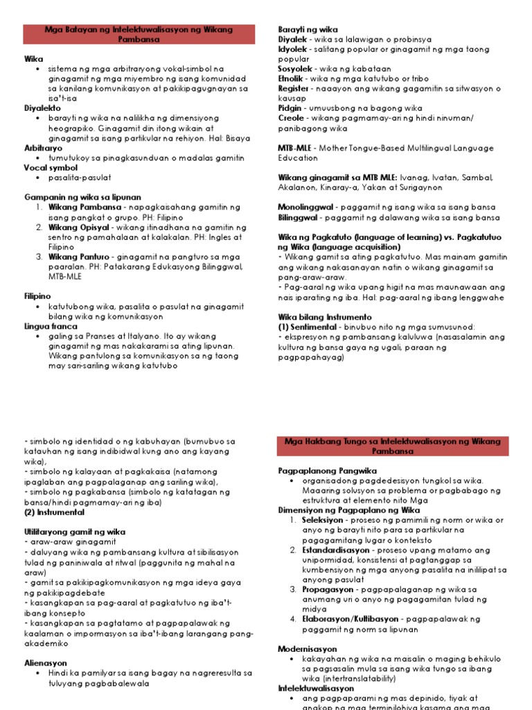 Mga Batayan Ng Intelektuwalisasyon Ng Wikang Pambansa