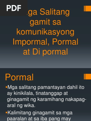 Mga Salitang Ginagamit Sa Impormal Na Komunikasyon Youtube