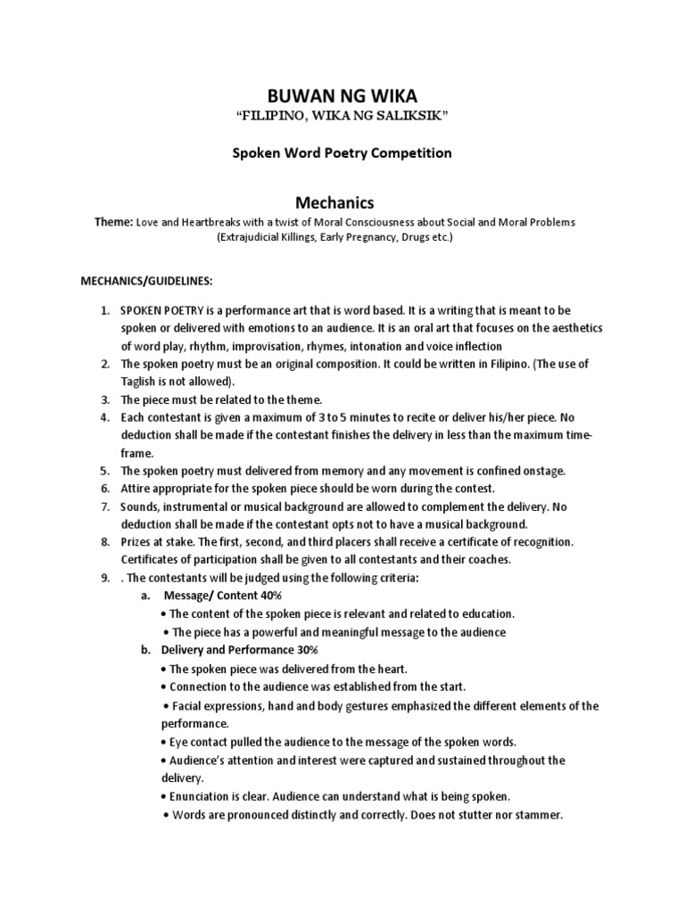 In The Philippines this form of poetry has also seen a rise in. Narito ang isang spoken poetry tungkol sa wika na maaari mong gawing inspirasyon sa paggawa mo ng sarili mong spoken word. Sa tulong ng wika Pilipinong hirang.