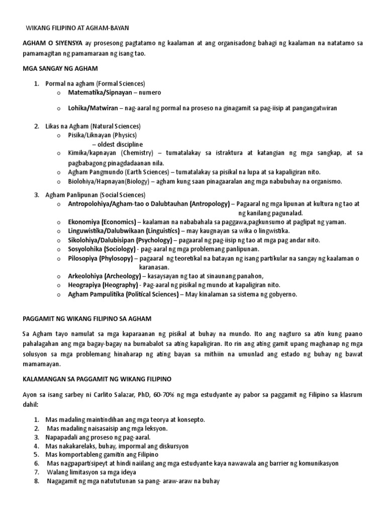 Wikang Filipino At Agham Bayan Docx