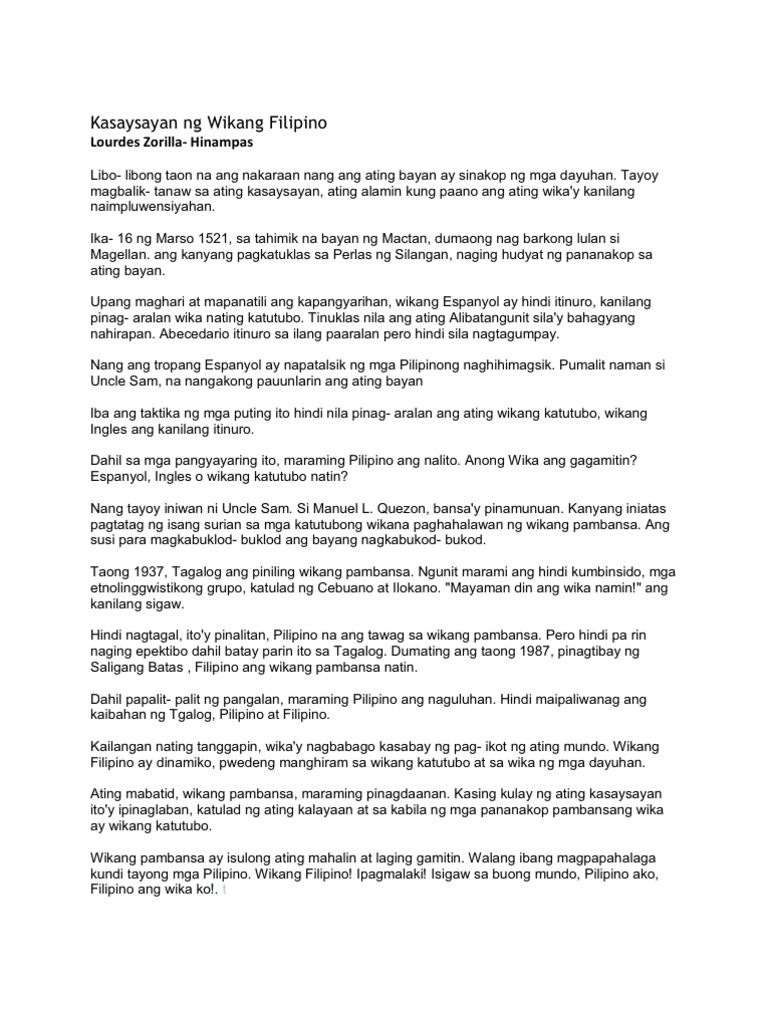 Kung walang iisang wika ang wikang Filipino mararating kaya natin ang. Ang maganda sa penomenong ito ay nagkaroon din ng kaniya-kaniyang literatura ang bawat etnolingguwistikong grupo. The national language of the Philippines is Filipino.