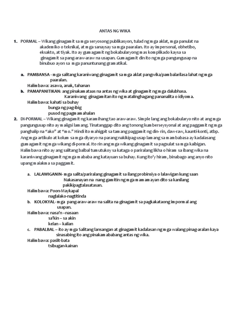 Antas Ng Wika Filipino 8 Halimbawa At Pagsasanay Youtube