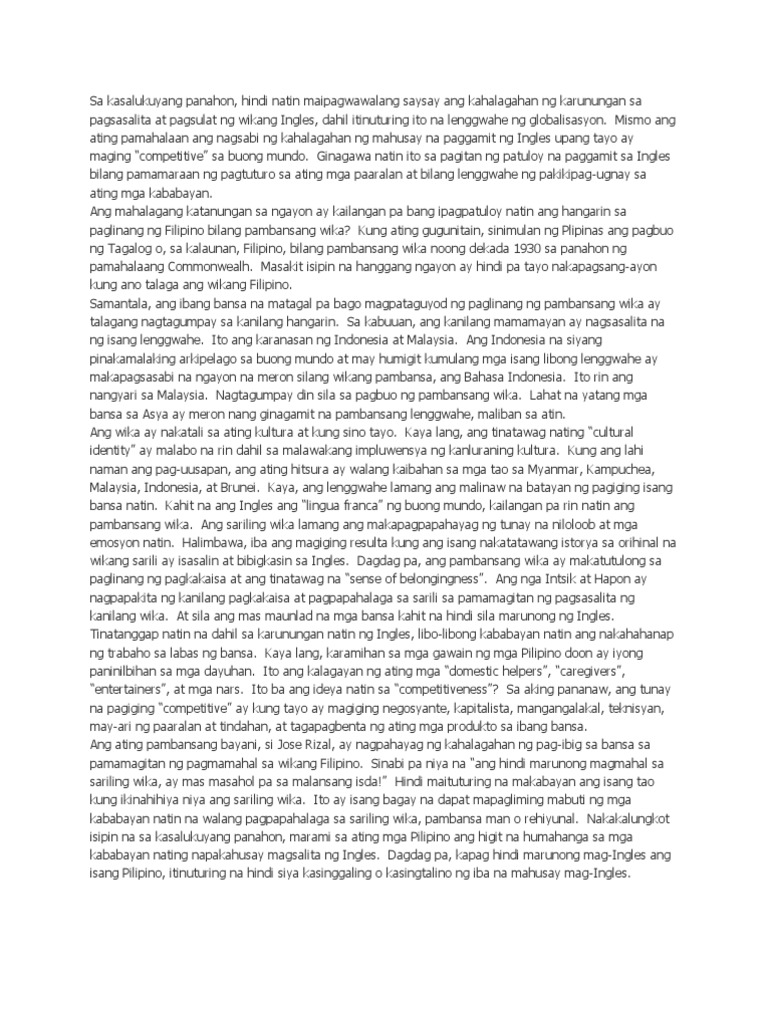 Ang Kahalagahan Ng Wikang Filipino Essay