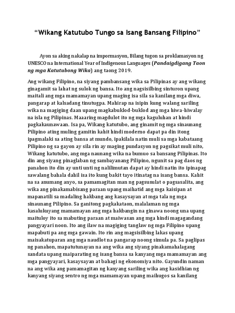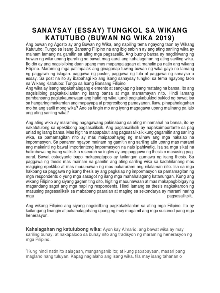Sanaysay Essay Tungkol Sa Wikang Katutubo Buwan Ng Wika 2019 Ben Benger