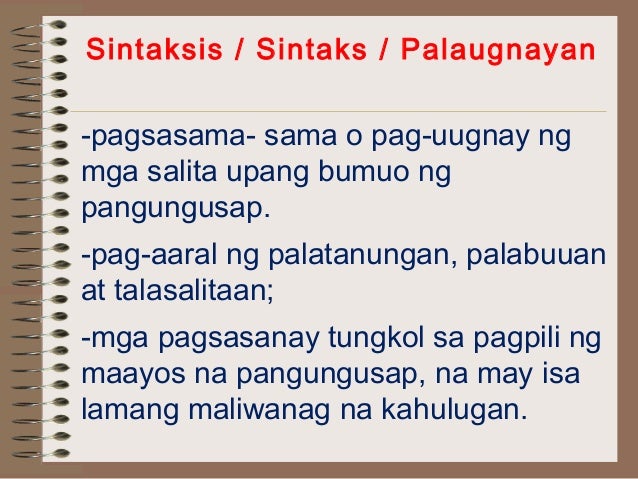 20052021 Ang Sintaksis Sa Wikang Filipino Pptx Powerpoint. Sabihin ay mangangahulugan o sa noun na. Harap sentral likod mataas i u gitna e o mababa a 2.