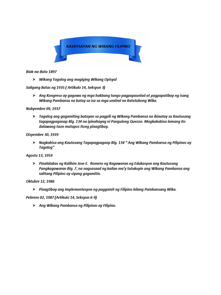 3 ang Konggreso ay gagawa ng mga hakbang tungo sa pagpapaunlad at pagpapatibay ng isang wikang pambansa na. Wwwkwfgovph sa tulong ng grant mula sa PAMBANSANG KOMISYON PARA SA KULTURA AT MGA SINING 633 Kalye Heneral Luna Intramuros 1002 Maynila Tel. View Kasaysayan ng Wikang Filipino-Timelinepdf from GECOURSES GEC11 at Southern Luzon State University.