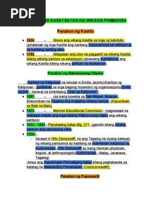 Koronolohikal Na Kasaysayan Ng Wikang Pambansa