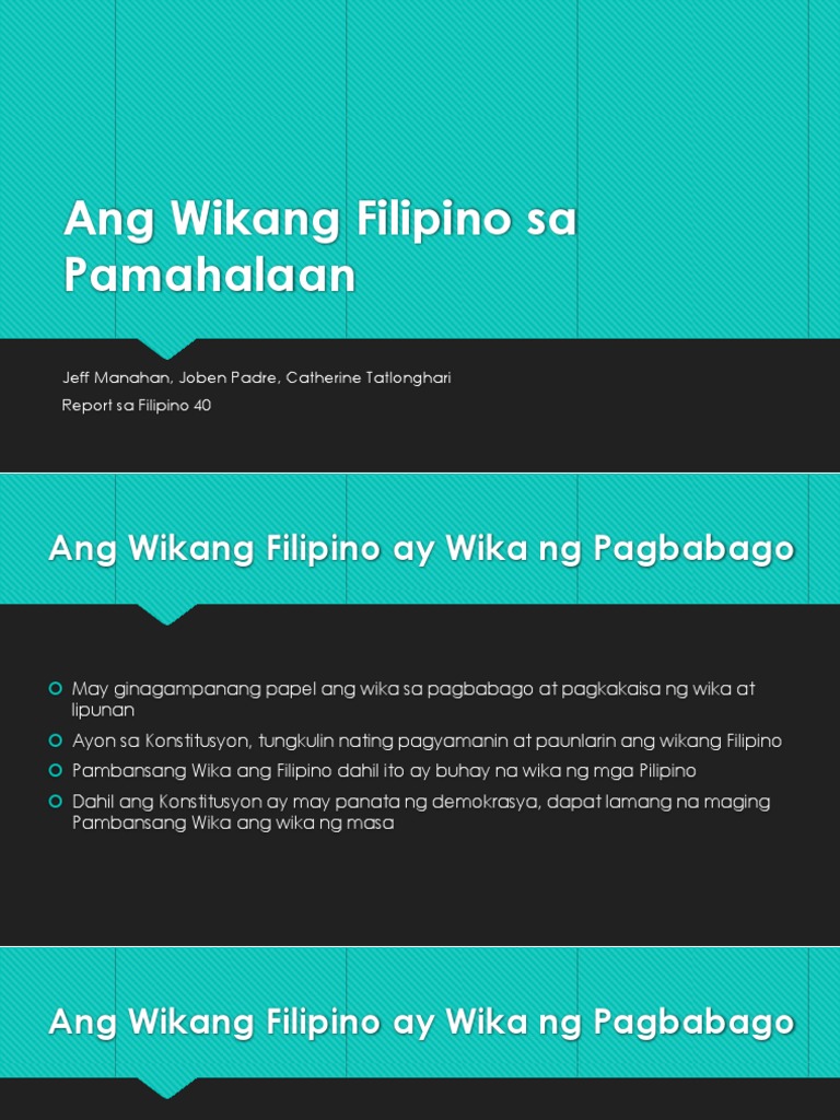 Wikang Filipino Ay Wika Ng Pagbabago By Ralph Recto