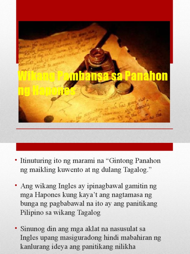 Kasaysayan Ng Wikang Pambansa Sa Panahon Ng Hapo Pptx Kasaysayan Ng Wikang Pambansa Sa Panahon Ng Hapon Sa Panahon Ng Hapon Napasidhi Kahit Sa Paraang Course Hero