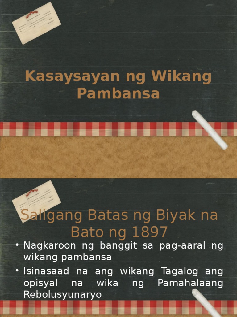30062011 Kasaysayan at Depinisyon ng Wikang Pambansa Slideshare uses cookies to improve functionality and performance and to provide you with relevant advertising. ANG WIKANG FILIPINO BILANG WIKANG PAMBANSA. PROSESO NG PAGLINANG Inihanda ni G.