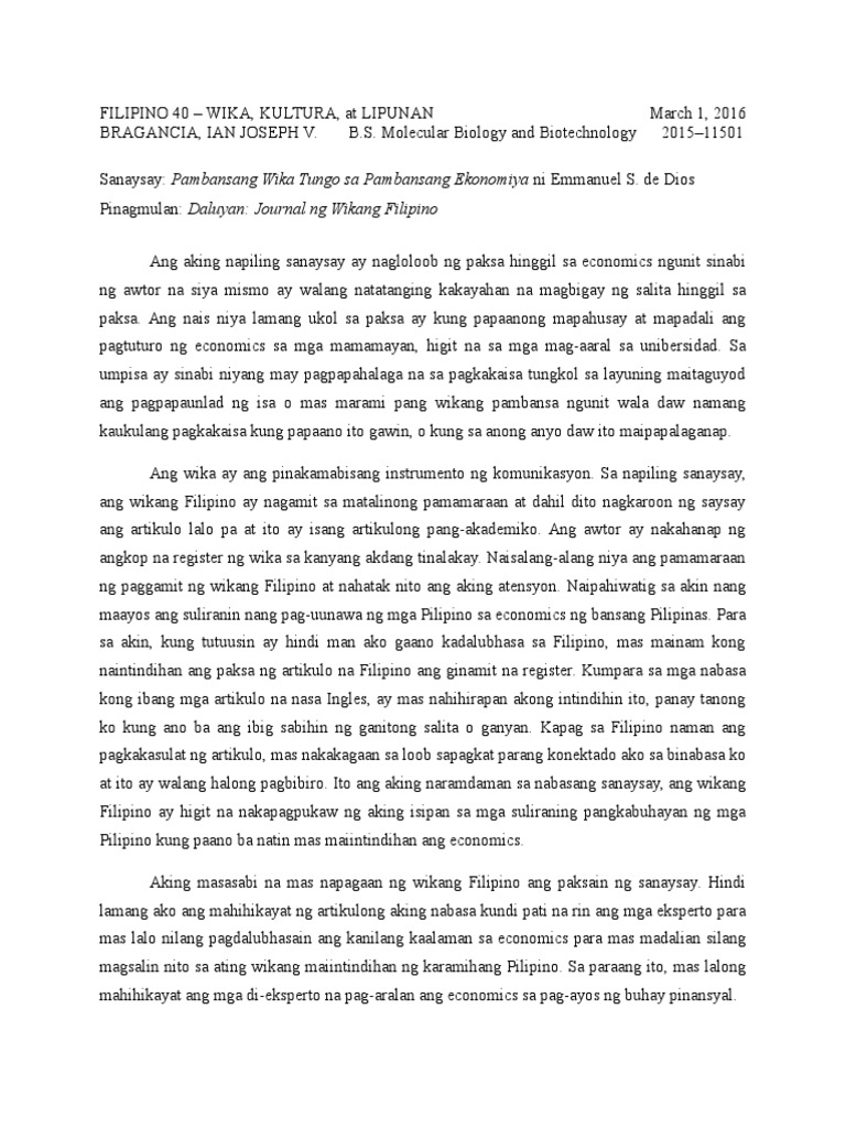 Ito ay monolingguwal sa Filipino at may layuning paunlarin ang pag-aaral at pananaliksik tungkol sa wika panitikan at kulturang Filipino at pagyamanin ang diskurso sa ibat ibang disiplina gamit ang wikang Filipino. NGY 21-80 Guidelines on the Grant of Covid-19 Hazard Pay during ECQ and MECQ. Paghambing ng mga Suliraning Panlungsod ng Metro Nairobi at ng.